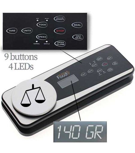 Royal Food BV 3250 - Vakuumiergerät mit Waage - Schweißleiste 30 cm . Automatisches Touch Öffnungs- und Schließungssystem mit Schalter - 120W - Schweißbalken 30 cm, AUTOMATISCHES Modell mit 4 Programmen - mit vielen Zubehören + 150 Beutel und Ansaugschlauch für Dosen im Lieferumfang ...