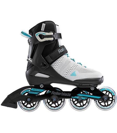 Stütze, Reaktivität und Strapazierfähigkeit sind perfekt ausgewogen um ein besseres Skating zu garantieren Schale/Oberschuh Spark Performance-Innenschuh mit Brandsohle Training Verschluss durch Schaftschnalle Klettband 45° Schnürung Aluminiumschiene Rollen 80mm/82A Kugellager SG 5 Farbbezeichnung: Grau/Türkis ...