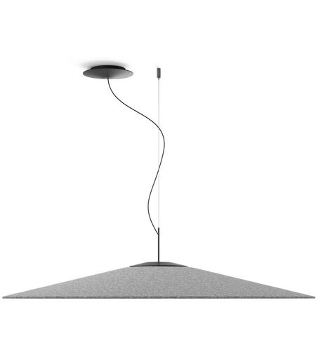 Die vom Studio Mandalaki entworfene Luceplan Koinè Pendelleuchte / Akustikleuchte ist eine perfekte Balance zwischen Technologie, Eleganz und Reinheit der Form. Der Reflektor besteht aus einer Kappe aus bis zu 60% recyceltem Filz, eine wirkungsvolle ästhetische Note, die es ermöglicht, den akustischen Komfort in Räumen zu verbessern und den Nachhall und die Ausbreitung von Schallwellen zu reduzieren. Im Inneren vervollständigt ein Aluminiumteil die Oberfläche und trägt dazu bei, den Filz zu stützen, während er gleichzeitig Wärme von der Lichtquelle ableitet. Der Design des Reflektors ist ein auffallend abgeflachter Kegel, welcher der Koinè ihren besonderen optischen Elan verleiht. Das Herzstück des Projekts ist die LED-Lichtquelle, an der eine maßgefertigte Minerallinse angebracht ist. Der Lichtkegel der Linse ist homogen und sauber, ein breiter und zugleich klar konturierter Lichtkegel.... ...