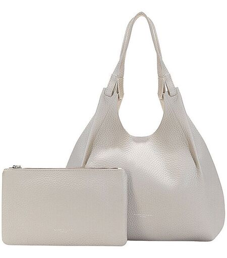 Die Tasche Dua von Gianni Chiarini besticht durch ihre schlichte Eleganz. Gefertigt aus doppellagigem, grob genarbtem Leder, verfügt sie über zwei passende Lederhenkel und einen Magnetverschluss. Damen Hobo aus hochwertigem Leder Hauptfach mit Magnetverschluss Herausnehmbare Pouch mit Reißverschluss Verstärkter Taschenboden Logo-Print auf der Vorderseite Zwei Tragegriffe Unifarben Farbbezeichnung: Lamb Castoro Maße: B: 34 x H: 38 x T: 16 cm Material: Leder ...