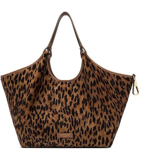 Damen Hobo aus hochwertigem Fell mit Leo-Print Hauptfach mit Magnetverschluss Herausnehmbare Pouch mit Reißverschluss Verstärkter Taschenboden Logo-Print auf der Vorderseite Zwei Tragegriffe Unifarben Farbbezeichnung: Lince Cuoio Maße: Ca. 38x34x16 cm. Material: Leder / Fell ...