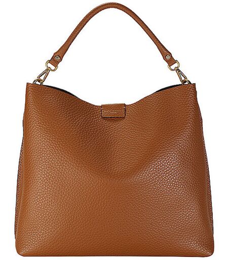 Damen Hobo Bag aus genarbtem Leder Tragehenkel Mit Schultergurt Hauptfach schließt mit Magnetverschluss Logo Detail Farbbezeichnung: Cuoio Maße: 36x31x14 cm Material: Leder ...