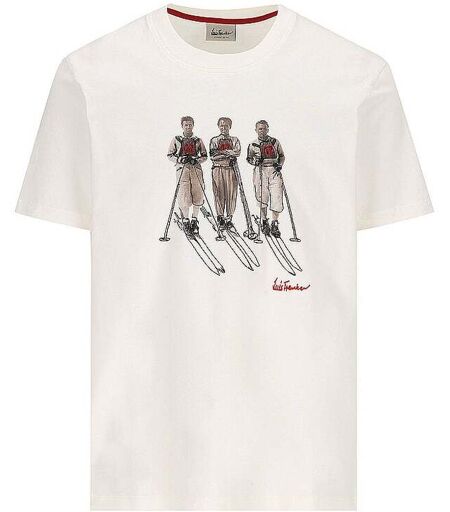Dieses T-Shirt im Regular Fit mit kurzen Ärmeln und Rundhalsausschnitt besteht aus reiner Bio-Baumwolle und greift mit seinem Print, der mit raffinierten Stickereien verziert ist, ein originales Motiv aus Luis Trenkers Skikarriere auf. Herren T-Shirt Extra Tragekomfort, hochwertige Bio-Baumwolle Am Ausschnitt gerippt, nostalgischer Retro-Print mit gestickten Elementen Farbbezeichnung: Kaltweiss Material: 100% Baumwolle ...