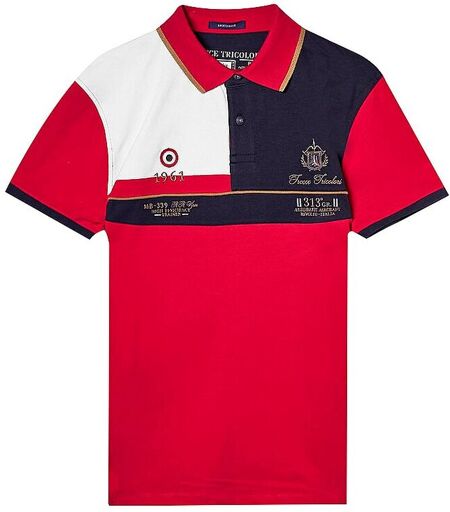 Herren Poloshirt aus Baumwoll-Pique Polokragen mit kurzer Knopfleiste Kurzarm Gerade geschnitten Logo Stickereien Colorblocking-Design Farbbezeichnung: Rot Navy Material: 95% Baumwolle, 5% Elasthan ...