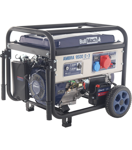 BullMach AMBRA 9500 E-3 - Benzin-Stromerzeuger mit Rädern mit AVR-Regelung 7.5 kW - Dauerleistung 7 kW - 400V