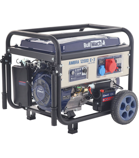 BullMach AMBRA 12000 E-3 - Benzin-Stromerzeuger mit Rädern mit AVR-Regelung 8.5 kW - Dauerleistung 7.8 kW - 400V