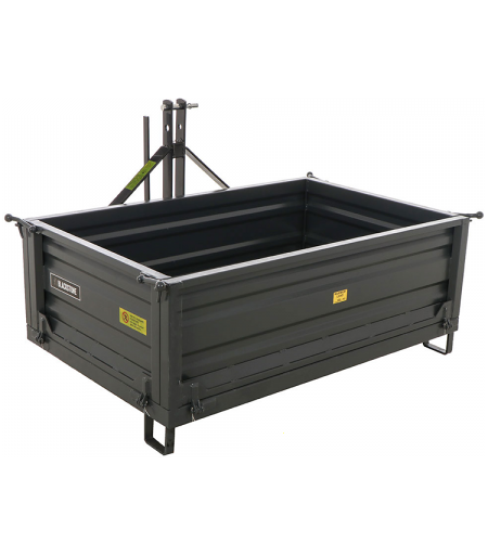 Heckcontainer Blackstone B-TB 140 für Traktoren - Kippbar - 3 abnehmbare Bordwände. Aufbau für Traktor mit Dreipunktaufhängung. Tragfähigkeit 500 kg - Breite cm 133 - Mechanische Kippvorrichtung - 3 Seiten - Rück- und Seitenwände - Kann geöffnet und entfernt werden. ...
