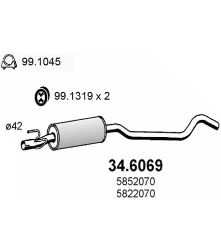 Asso Mittelschalldämpfer Für Vauxhall Opel 5852070 9128616 5822070 34.6069