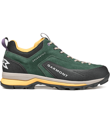 Garmont Dragontail – Damen-Wanderschuh für warme Tage Der Garmont Dragontail Damen ist ein besonders atmungsaktiver Damen-Wanderschuh , der für trockene und warme Bedingungen entwickelt wurde. Ideal für Tageswanderungen, Zustiege und Freizeitaktivitäten bei hohen Temperaturen. Das Obermaterial besteht aus langlebigem Veloursleder mit TPU-Verstärkungen. Im Inneren sorgt ein atmungsaktives Mesh-Futter für angenehme Belüftung und ein gutes Fußklima – auch bei intensiven Aktivitäten im Sommer. Stabilität & Passform für den Damenfuß Die GTF™ DIAMANTE Außensohle sorgt für sicheren Grip, während die EVA-Zwischensohle mit doppelter Dichte gute Dämpfung und Stabilität bietet. Die a.d.d.® Technologie – mit anatomisch geformter Zunge und asymmetrischem Schaft – garantiert eine perfekte Passform. Die spezielle Damenleistenform berücksichtigt die natürliche Anatomie des weiblichen Fußes für zusätz... ...