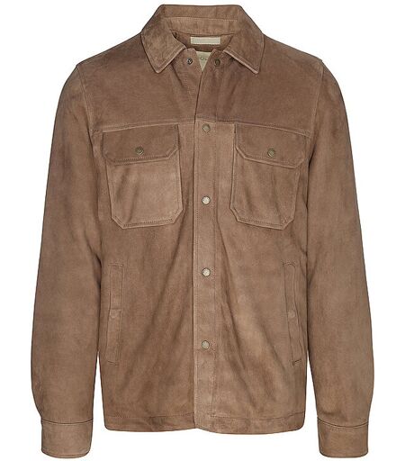 Herren Jacke aus weichem Leder Kentkragen Schließt mit Druckknopfleiste Langarm mit Manschetten Aufgesetzte Brusttaschen Seitliche Eingrifftaschen mit Druckknopf Gerade Passform Unifarben Farbbezeichnung: Falcone Material: 100% Leder Futter: 100% Polyamid ...