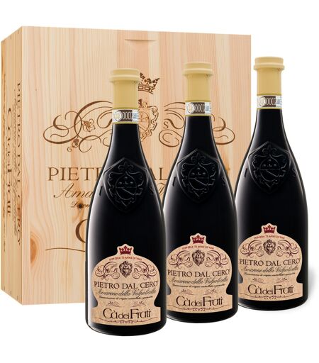 3 x 0,75-l-Flasche Cà dei Frati Pietro Dal Cero Amarone Della Valpolicella DOCG trocken, Rotwein 2017 - mit Holzkiste