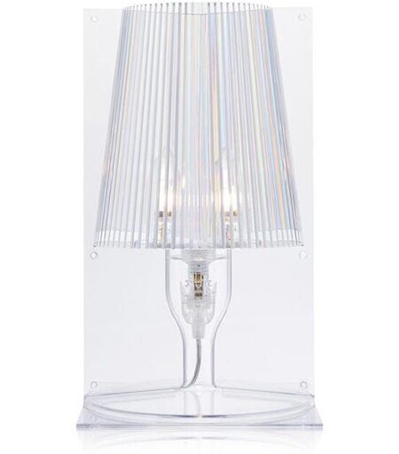 Die Kartell Take Tischleuchte von Designer Ferruccio Laviani ist die zeitgenössische Adaption einer Nachttischlampe. Als Teil der nachhaltigen Kollektion von Kartell besteht die kleine Leuchte aus erneuerbarem Material. Die Kartell Take Tischleuchte wird aus transparentem oder durchgefärbtem Polycarbonat 2.0 hergestellt. Das Material basiert auf einem erneuerbarem Rohstoff der Zellstoff- und Papierindustrie und ist ISCC-zertifiziert (International Sustainability and Carbon Certification). Die charismatische Form der Kartell Take entsteht aus der Verbindung zweier gespiegelter Hälften, die aneinandergesetzt werden. Zwei flache, rechteckige und zweidimensionale Platten in der Mitte dieser ...