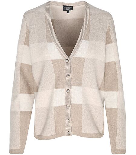 Damen Strick-Cardigan aus hochwertigem Schurwoll-Mix V-Ausschnitt Langarm Karomuster Gerippte Bündchen an Ärmel und Saum Gerade Passform Farbbezeichnung: Fancy Beige Material: 90% Schurwolle 10% Cashmere ...