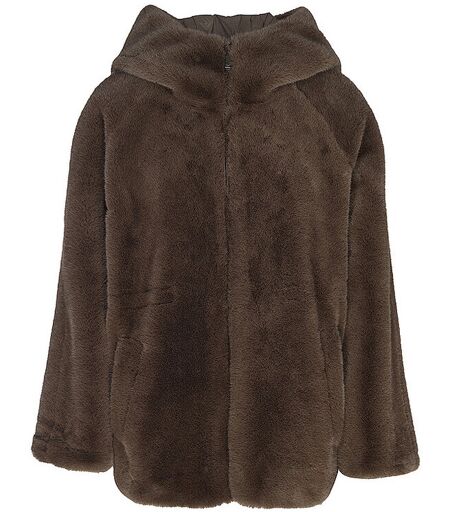 Wendebare Damen Jacke Außenseite in Pelz-Optik Innenseite aus Nylon mit durchgehendem Adler-Logo Kapuze Schließt mit Reißverschluss Tunnelzugbund Seitliche Eingrifftaschen Gerade Passform Farbbezeichnung: Braun Material: 100% Polyester ...