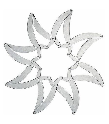 Sehr dekorativer und praktischer Untersetzer in wunscherschöner Sternform. Mit seinem edlen Design ist der Topfuntersetzer auch für die festliche Tafel ideal geeignet. Er ist aus hochwertigem Edelstahl gefertigt und glänzend poliert. Der sternförmige Alessi Augh Topf-Untersatz passt sich jeder Größe an und lässt sich in zusammengezogenem Zustand gut verstauen. ...