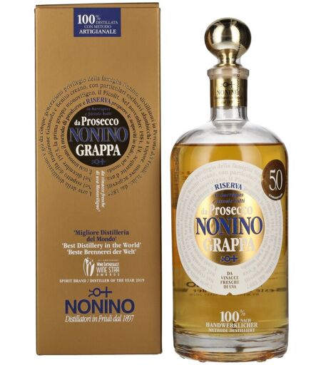 Die Nonino Brennereien sind weltweit einzigartig, da sie über fünf handwerklich betriebene Destillerien verfügen, die jeweils mit 12 diskontinuierlichen Dampfbrennkolben aus Kupfer ausgestattet sind. Jede dieser Destillerien repräsentiert ein Familienmitglied, und zusätzlich gibt es einen Dampfbrennkolben für jedes Enkelkind, was die fortgesetzte Hingabe zur Kunst der Destillation innerhalb der Familie verdeutlicht. Im Jahr 1973 führte die Nonino-Familie erstmals die Produktion ihres Grappa Monovitigno ein, hergestellt aus Trester. Trester sind die festen Rückstände, die nach dem Pressen der Traube zurückbleiben. Der Nonino Grappa Monovitigno il Prosecco entsteht aus den Trester-Rückständen der Glera-Traube, die üblicherweise für die Herstellung von Prosecco verwendet wird. Nach einer Destillation in Kupfer-Dampfbrennkolben reift er anschließend für 24 Monate in Barrique-Fässern. Besonders hervorzuheben ist, dass dieser Grappa ohne die Zugabe von zusätzlichen Farbstoffen abgefüllt wird, was seine natürliche Farbe betont.t. Farbe: Bernstein mit Goldreflexen. Nase: Blumig, Duft nach Vanille. Geschmack: Mandeln, Grüne Äpfel, Vanille, Schokolade. Abgang: Lang anhaltend. Servieren Sie den Grappa bei Raumtemperatur. ...