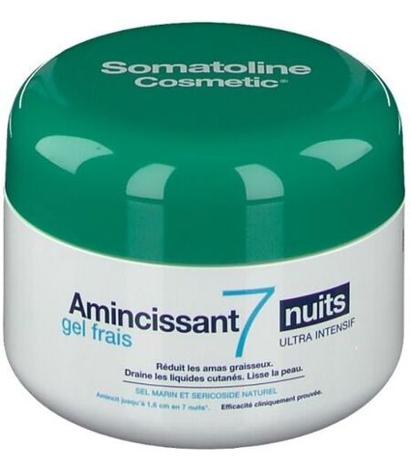 Die maximale Schlankheitswirkung Somatoline Cosmetic in nur 7 Nächten*.Seine exklusive, schnell wirkende Formel dank BioGelSlim7-complexTM, hochkonzentriert auf spezifische Wirkstoffe wie Meersalz und Sericosid, ermöglicht es, in nur 7 Nächten sichtbare und klinisch geprüfte Ergebnisse zu erzielen. Seine leichte und innovative Geltextur ist ideal für die Massage und macht die Haut dank Meersalz glatt und seidig.Der umhüllende Meeresduft bietet ein angenehmes Gefühl von Wohlbefinden und Frische.*Kosmetische Umgestaltungsaktion, die keine Gewichtsabnahme beinhaltet.VorteileDreifache Schlankheitsaktion:Lipolytisches Mittel fördert die Reduzierung von FettablagerungenDie Drainage fördert die Ausscheidung überschüssiger Hautflüssigkeiten.Anti-Stocking verhindert die Bildung vonIndikationenIdeal für Frauen mit lokalisierter Adipositas an Hüften und Oberschenkeln, die eine kosmetische Behandlung mit schnellen Ergebnissen wünschen. Frauen, die Texturen mögen, die ein angenehmes Gefühl von Frische auf der Haut hinterlassen.AnwendungstippsJeden Abend für 7 Nächte auftragen. Für maximale Ergebnisse kann die Anwendung bis zu 4 Wochen fortgesetzt werden.ZusammensetzungenAqua, Ehemann-Sal, Alkohol Denat, Glycerin, Ethoxydiglykol, Dimethicon, Xanthangummi, Koffein, Parfüm, Pentapeptid-25, Fucus-Vesiculose-Extrakt, Sericosid, Sphacelaria-Scoparia-Extrakt, Menthol, Hydroxyethylcellulose, Natriumbenzoat, Dimethicone/Vinyl-Dimethicon, Butylenglykol, Phenoxyethanol, Imidazolidinylharnstoff, Geraniol, CI 42051.Konditionierung250 ml Glas ...