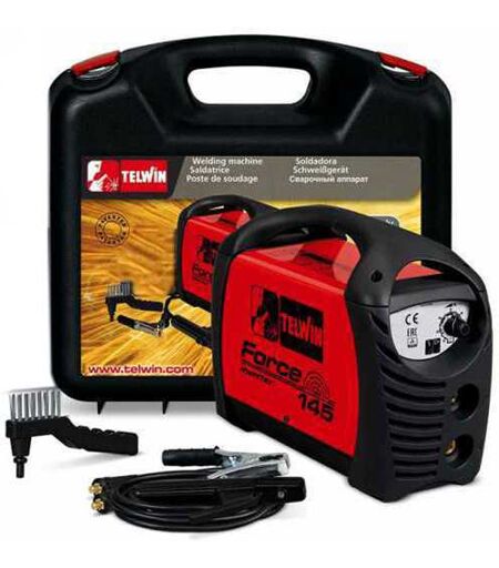 Elektroden-Schweißgerät Inverter mit Gleichstrom Telwin FORCE 145 - 130A, Kit. Inverter-Schweißgerät MMA 230V - 10-130 A - Motorgenerator +/-15% - Koffer, Elektrodenzange und Masse mit Kabeln, Bürste im Lieferumfang ...