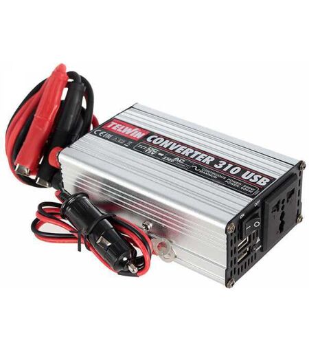 Telwin Converter 310 - Stromkonverter Inverter USB von 12V DC bis zu 230V AC - 2 USB-Anschlüsse