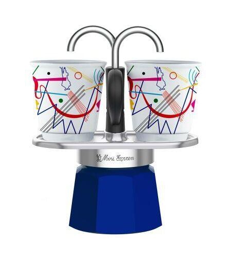 Bialetti Mini Express - Espressokocher-Set - blau + 2 Becher aus Arte Collection Kandinsky 1407