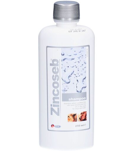 Zincoseb Shampoo stimuliert durch die natürliche Wirkung von Schwefel und Salicylsäure die Regeneration der Haut bei starker Schuppenbildung – vor allem am Kopf – in Folge von erhöhten Talgabsonderungen und beugt damit Schuppen vor. Die Synergie zwischen dem Schwefel, der Salicylsäure und dem Zink (bildet eine schützende Schicht) fördert die Vitalität und natürliche Funktion der Haut und der Haare, baut Verspannungen ab und mildert den Juckreiz. Lanolin sorgt für geschmeidige, durchfeuchtende Haut und erhöht die regenerative Wirkung. Die leichte Duftnote überwiegt den unangenehmen Geruch der Hautschuppen. Anwendung: Fell und Haut des Tieres mit handwarmen Wasser gut durchfeuchten und das Shampoo sanft in die Haut einmassieren. Einige Minuten das Shampoo in direktem Kontakt mit der Haut einwirken lassen und dann gut ausspülen. Tier abtrocknen. Wiederholung der Behandlung 2 bis 3x pro Woche über 3-4 Wochen. Hinweis: Zincoseb Shampoo kann auch für junge Hunde und junge Katzen verwendet werden. Inhaltsstoffe: Salicylsäure, Milchsäure, Lanolin, Schwefel, Zink, Chlorhexidin, destilliertes Wasser, oberflächenaktive Substanzen, Betain, biogenes Amid aus der Kokosnuss, Eindickungsmittel, Konservierungsmittel ...