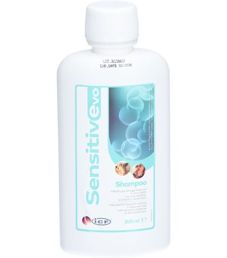 Sensitiv evo Shampoo Shampoo geeignet für häufiges Waschen bei Hunden und Katzen mit empfindlicher, geröteter und / oder dehydrierter Haut. Dank seiner ernährungsphysiologischen Eigenschaften trägt es zur Wiederherstellung und Erhaltung der physiologischen Integrität der Hydrolipidbarriere der Haut bei und reduziert den Juckreiz. Seine nicht aggressive Formulierung mit beruhigender und weichmachender Wirkung ist besonders geeignet für Hunde und Katzen mit Haut: gerötet, empfindlich, dehydriert. Ideal auch für Hunde und Katzen mit weißem Fell. Anwendung: Befeuchten Sie das Fell des Haustiers vollständig mit warmem Wasser. Einige Minuten einreiben und gründlich ausspülen. Wiederholen Sie zunächst 2 mal pro Woche oder auf jeden Fall nach den Anweisungen des Tierarztes. Das Shampoo kann auch bei Welpen verwendet werden. Inhaltsstoffe: Entionisiertes Wasser, anionische Tenside (gleich oder mehr als 5 %, aber weniger als 15 %), Glykole, amphotere Tenside (weniger als 5 %), D-Pantothenol, Harnstoff, Beistoffe, Konservierungsmittel (Phenoxyethanol), Hydroglycerinextrakte, Duft. ...