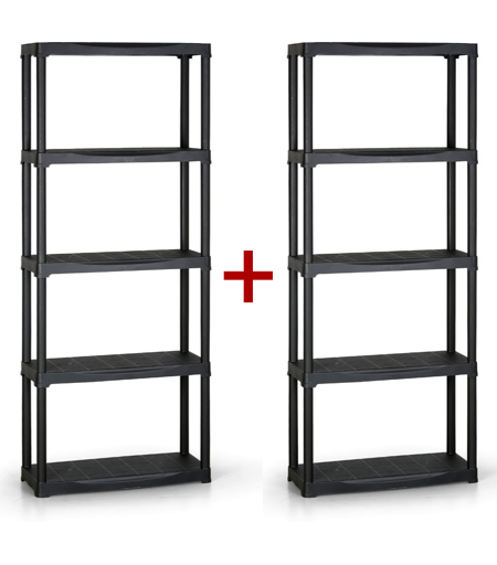 Fachbodenregale aus Kunststoff, für Büro, Haushalt, Keller und Garage geeignet die Regale sind gegen Schimmel, Korrosion und Chemikalien beständig sehr schnelle Montage, die Fachböden werden auf Kunststoffrohre geschoben, wodurch eine ausreichend stabile Konstruktion geschaffen wird Eigenschaften: Höhe (mm): 1740, Breite (mm): 700, Tiefe (mm): 300, Anzahl Regalböden: 5, Tragfähigkeit je Boden (kg): 20, Packung (Stk.): 1+1 GRATIS, Farbe: schwarz, Ausführung: Grundregal, Montageart: einschiebbar, Regalbodenmaterial: Kunststoff ...