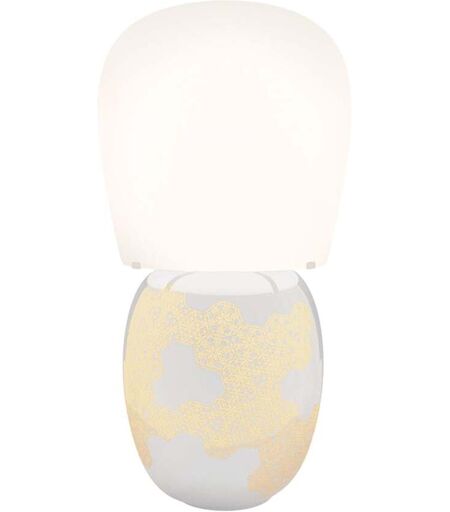Bezaubernd klassisch - die Kundalini Hive Tischleuchte mit einem Schirm aus mundgeblasenem und zweischichtigem Opalglas und einem Emaille-Keramikkörper, verziert mit der „Dreiphasenbrand“ Methode. Daraus entsteht eine außergewöhnliche, zeitlose Skulptur, die anmutend besticht. Egal ob im Wohn-, Schlaf- oder anderen Zimmern, die effektvolle Hive Tischleuchte wertet mit ihrem unwiderstehlichen Design und bezaubernden Licht jede Umgebung auf und sorgt für eine optimale, angenehme und luxuriöse Raumatmosphäre. Die Kundalini Hive Tischleuchte kombiniert einen ovalen Schirm aus mundgeblasenem und zweischichtigem Opalglas mit einem Keramikkörper und einmaligem Design. Sie spendet gemütliches warmweißes Licht und sorgt für eine besonders stimmungsvolle Atmosphäre. Wer eine effektvolle, außergewöhnliche Leuchte für visuelle Akzente sucht, liegt mit der Kundalini Hive Tischleuchte genau richtig. ... ...