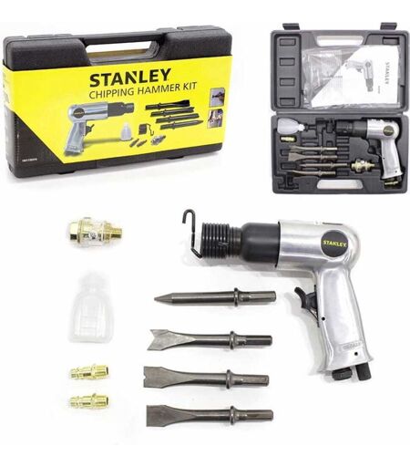 Mit dem Stanley Drucklufthammer-Set arbeiten Sie schnell und präzise. Dieses 10-teilige Set ist ideal für Meißel- und Abbrucharbeiten und lässt sich dank des 1/4" Anschlusses einfach in Ihr Druckluftsystem integrieren. Ein Muss für jeden Profi oder Heimwerker. ...