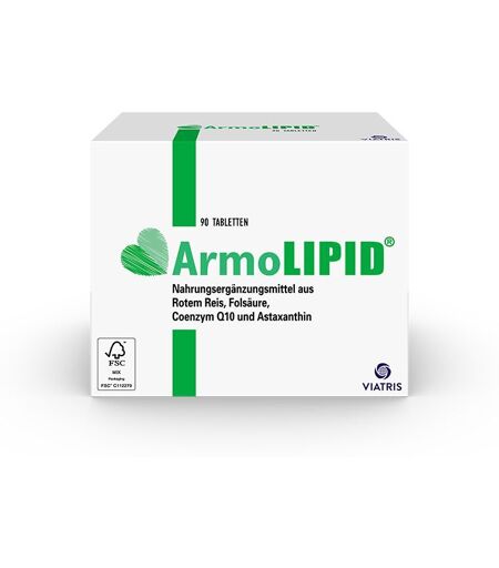 Nahrungsergänzungsmittel sind kein Ersatz für eine abwechslungsreiche und ausgewogene Ernährung und eine gesunde Lebensweise. ArmoLIPID Cholesterin natürlich im Griff Freie Bahn für die Gefäße Unterstützt die Lipidsenkung dank Roter-Reis-Komplex Nur eine Tablette täglich Für ein cholesterinbewusstes Leben Ein erhöhter Cholesterinspiegel zählt zu den größten Risikofaktoren für Herz-Kreislauferkrankungen. Diese erhöhten Blutfettwerte sind, laut WHO, in Europa mit fast 50% die häufigste Ursache für einen vorzeitigen Tod*. Eine erhöhte Cholesterinmenge im Blut kann dazu führen, dass sich Cholesterin in den Gefäßwänden ablagert, man spricht von Atherosklerose. Neben den Ablagerungen kann es zu weiteren Prozessen kommen wie zum Beispiel chronischen Entzündungsreaktionen, die zur Bildung von Blutgerinnseln führen können. Wird der Blutfluss zum Herzen durch ein Gerinnsel vollständig blockiert, führt dies zu einem Herzinfarkt. Gelangt ein Gerinnsel in die Blutgefäße des Gehirns, kann ein Schlaganfall die Folge sein. Da ein erhöhter Cholesterinspiegel selbst keine bestimmten Symptome verursacht, sollte dieser bei Erwachsenen regelmäßig beim Arzt überprüft werden. Nicht immer lassen sich durch einen gesunden Lebensstil und die richtige Ernährung die Blutfettwerte ausreichend senken. ARMOLIPID® Tabletten mit dem speziellen Roter-Reis-Komplex unterstützen mit nur einer Tablette täglich auf Basis von natürlichen Inhaltsstoffen die Senkung des Cholesterinspiegels. Der spezielle Roter-Reis-Komplex Eine spezielle Kombination aus Inhaltsstoffen wie Rotem Reis mit Monacolin K, Folsäure, Asta- xanthin und Coenzym Q10 tragen dazu bei, erhöhte Cholesterinspiegel auf natürliche Weise zu senken. Roter Reis ist seit langem wegen seiner besonderen Eigenschaften bekannt. Roter Reis wird durch einen Fermentationsprozess hergestellt. Dabei entsteht Monacolin K. Die Kombination der natürlichen Inhaltsstoffe trägt zur Aufrechterhaltung eines gesunden Cholesterinspiegels bei. Zutaten: Stabilisatoren: Dicalciumphosphat, mikrokristalline Cellulose, rot fermentierter Reis (Monascus pupureus) eingestellt auf 1,5% Monacolin, Astacanthinextrakt aus Grünalgen, Maisstärke, Ascorbinpalmitat, Tocopherole, Trennmittel: Magnesiumsalze der Speisefettsäuren. Siliciumdioxid, COenzym Q10, Ptheroylmonoglutaminsäure (Folsäure) Nährwerte: Zusammensetzung pro Tablette Rot fermentierter Reis 200 mg entsprechend Monacolin 3 mg Folsäure 200 µg Coenzym Q10 2,0 mg Astaxanthin 0,5 mg Verzehrempfehlung: Eine Tablette täglich am Abend mit ausreichend Wasser einnehmen. Im Falle von Schluckbeschwerden wird empfohlen, die Tabletten in zwei Hälften zu teilen und diese mit einem Glas Wasser einzunehmen. Hinweis: Die angegebene empfohlene Tagesmenge darf nicht überschritten werden. Armolipid sollte nicht bei stillenden Frauen, Personen unter 18 Jahren und Erwachsenen über 70 Jahren verzehrt werden. Aufbewahrung: Kühl (6-25 °C) und lichtgeschützt lagern. Außerhalb der Reichweite von kleinen Kindern aufbewahren.... ...