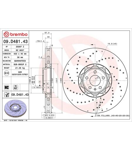 BREMBO Bremsscheibe Bremsscheibenart:Bremsscheibe zweiteilig Bremsscheibenart:Gelocht/innenbel. Bearbeitung:hochgekohlt Lochanzahl:5 Bremsscheibendicke [mm]:40 mm Außendurchmesser [mm]:420 mm Oberfläche:beschichtet Zentrierungsdurchmesser [mm]:68 mm Höhe [mm]:57 mm Mindestdicke [mm]:38 mm , u.a. für Audi A7 (4KA), 3996 cm³, 600 PS (441 kW), ab 10/2019, KBA-Nr: 1860ABBAudi A6 C8 (4A5), 3996 cm³, 600 PS (441 kW), ab 9/2019, KBA-Nr: 1860ABA , OE-Nummer:AP:20287 ZBRECO:BZ 9557 ...