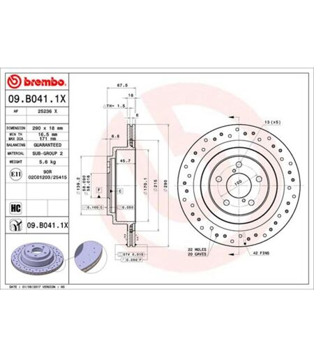 Bremsscheibe BREMBO 09.B041.1X, 1 Stück