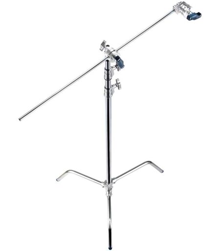 Manfrotto Avenger C-Stativ Stativ 40'' schwarz 3,3m Kit Das Avenger A2033FCB Kit in silber besteht aus dem A2033F 40'' C-Stativ mit 3 Segmenten, 2 Steigrohren und festem Standfuß aus Chromstahl (maximale Höhe von 330 cm), einem silbernen D200 2 1/2 Zoll Griffkopf und einem silbernen 40'' D520 Griffarm. Unverlierbare Griffe Die Avenger C-Stative verfügen über unverlierbare Griffe, die nicht vibrieren, sind dreifach verchromt und halten selbst den ...