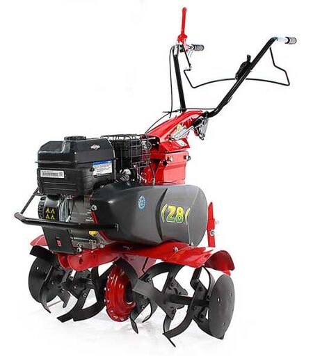 Motorhacke Eurosystems Z8 - B&S Reihe 950 OHV Benzin - Gänge 2+1. 2 Vorwärtsgänge + 1 Rückwärtsgang - verstärkter Hacksporn - 2 Einstellungen der Fräse: 75cm - 50cm - Seilticher Riemenantrieb - 4Takt Benzinmotor B&S von 208 ccm. ...