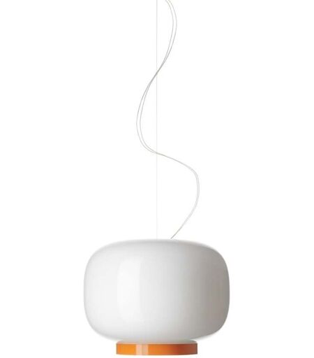 Die Foscarini Chouchin 1 Reverse LED Pendelleuchte ist Teil der erfolgreichen Leuchtenserie entworfen von der Designerin Ionna Vautrin für den italientischen Hersteller Forscarini. Die Foscarini Chouchin 1 Reverse LED Pendelleuchte ist ein poetisches und dekoratives Modell und hat am unteren Ende einen schmalen Hals in einem warmen orangen Farbton, der auf originelle Weise den Diffusor aus geblasenem weißem Glas abschließt und ein sonniges und diffuses Licht im Raum verbreitet. Die Foscarini Chouchin Reverse LED Pendelleuchten behalten die Formen der Ursprungskollektion 'Chouchin' bei, kehren aber die Farbgebung um. Der Diffusor wird weiß und der Leuchtenkragen erhält die Farbe der Ursprungsleuchte. So entsteht nicht nur eine neue Farbe, sondern vor allem auch ein neues Licht und eine neue Einsatzmöglichkeit. Die Foscarini Chouchin 1 Reverse LED Pendelleuchte ist, dank des Diffusors au... ...