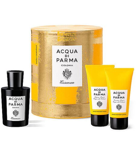 Ein festliches Colonia Essenza Geschenkset mit dynamischen, goldfarbenen Karomustern der gefeierten Architektin und Designerin India Mahdavi für eine Weihnachtszeit voller Farbe und Freude. Dieses Geschenkset aus der Venetian Holiday Kollektion präsentiert die faszinierenden Noten von Colonia Essenza in einem besonderen Karton mit leuchtend-goldenen Karo-Prints. Die von India Mahdavi entworfenen Muster interpretieren die Codes der italienischen Architektur anhand des farbenfrohen, originellen Universums der Designerin und der Lebendigkeit von Acqua di Parma neu. In diesem Colonia Essenza Geschenkset, das mit einem herausnehmbaren Innenteil versehen ist, sodass es ein zweites Leben führen und nach Belieben wiederverwendet werden kann, befinden sich 100 ml Colonia Essenza Eau de Cologne, 75 ml Colonia Hand- und Bodywash und 75 ml Colonia Hand- und Körperlotion – ein luxuriöses Trio für ein multisensorisches Erlebnis. Colonia Essenza Eau de Cologne: Faszinierend, entschlossen und charakteristisch. Colonia Essenza interpretiert das klassische Colonia aus einer modernen Sichtweise. Ein holziger Duft, der authentische Eleganz verkörpert. Colonia Hand- und Bodywash: Ein frisches Hand- und Körperwaschmittel, das die Haut reinigt und dabei den unverwechselbaren Duft der frischen Zitrusnoten von Colonia hinterlässt. Die Formel enthält aktive Inhaltsstoffe: feuchtigkeitsspendendes Panthenol sowie erfrischenden und schützenden Aloe-Extrakt. Colonia Hand- und Körperlotion: Eine duftende Hand- und Körpercreme, die der Haut die Aufmerksamkeit schenkt, die sie verdient, und sie mit den unverwechselbaren Noten von Colonia umhüllt. Als Teil Ihrer täglichen Pflegeroutine verwendet, macht diese leichte Handcreme Ihre Haut geschmeidig. Verpackung FSC-zertifiziertes Papier Dank des herausnehmbaren Innenteils aus recyceltem Kunststoff kann der rechteckige Karton als elegantes Accessoire wiederverwendet werden." INGREDIENTS: ALCOHOL DENAT. • AQUA (WATER) • PARFUM (FRAGRANCE) •LIMONENE • HYDROXYCITRONELLAL •LINALOOL •ETHYLHEXYL METHOXYCINNAMATE • BENZYL SALICYLATE • CITRAL • COUMARIN • BUTYL METHOXYDIBENZOYLMETHANE • ETHYLHEXYL SALICYLATE • EUGENOL • BHT • ALPHA-ISOMETHYL IONONE • GERANIOL • BENZYL BENZOATE •AMYL CINNAMAL •EVERNIA PRUNASTRI (OAKMOSS) EXTRACT •FARNESOL • CITRONELLOL AQUA (WATER) SODIUM LAURETH SULFATE COCAMIDOPROPYL BETAINE PARFUM (FRAGRANCE) PPG-26-BUTETH-26 PEG-150 DISTEARATE PEG-40 HYDROGENATED CASTOR OIL LIMONENE SODIUM BENZOATE CITRIC ACID POLYQUATERNIUM-10 HYDROXYCITRONELLAL LINALOOL DISODIUM EDTA PANTHENOL MARIS SAL (SEA SALT) GLYCERIN CITRAL BENZYL SALICYLATE EUGENOL MENTHA AQUATICA LEAF EXTRACT BENZYL BENZOATE ALPHA-ISOMETHYL IONONE BHT SODIUM ACETATE SODIUM CHLORIDE ISOPROPYL ALCOHOL POTASSIUM SORBATE TOCOPHEROL SILICA ALCOHOL DENAT. AQUA (WATER) TRIETHYL CITRATE GLYCERIN PARFUM (FRAGRANCE) PEG-40 HYDROGENATED CASTOR OIL ETHYLHEXYLGLYCERIN LIMONENE HYDROXYCITRONELLAL LINALOOL CITRAL BENZYL SALICYLATE EUGENOL... ...