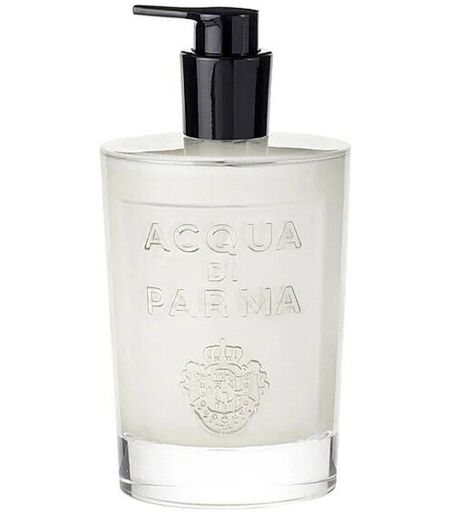 Die Colonia Handlotion, eine feuchtigkeitsspendend Formel mit dem Duft der unverwechselbaren Colonia Noten wird in einem eleganten 330-ml-Glasflakon präsentiert. Dieser wurde vom Art-déco-Design inspiriert und ist mit einem Acqua di Parma Logo verziert. Die Colonia Handlotion im Glasflakon ist ein Pflegeprodukt für die Hände mit einer leicht und schnell einziehenden Formel. Diese Lotion pflegt, spendet Feuchtigkeit und macht die Hände weich, geschmeidig und duftet zart nach den ikonischen Noten von Colonia, ohne ölige Rückstände zu hinterlassen. Die Handlotion befindet sich in einem kostbaren 330-ml-Glasflakon. Dieser wurde von den unverwechselbaren Art-déco-Duftflakons von Acqua di Parma inspiriert und trägt die Logoprägung der Maison mitten auf dem Glas. Ein kostbares Objekt, das nachgefüllt und wiederverwendet werden kann und Ihre persönlichen Rituale über lange Zeit hinweg begleitet. ...