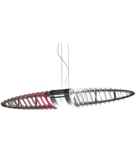 Die Luceplan Queen Titania Pendelleuchte ist die größere Version der berühmten Luceplan Titania. Das futuristische Design lieferten Alberto Meda und Paolo Rizzatto 2005. Seitdem produziert der italienische Leuchtenhersteller Luceplan die Queen Titania Pendelleuchte. Die technische und vielseitige Hängeleuchte besitzt eine Grundstruktur aus aluminium. Der Rippenaufbau reflektiert das Licht und sorgt dafür, dass die Luceplan Queen Titania sowohl undurchlässig als auch durchsichtig erscheint. Mit Hilfe der zusätzlich kaufbaren Farbfilter kann die Pendelleuchte gelbes, rosanes, hellblaues und lilanes Licht annehmen, wobei das Zentrum nicht farbig strahlt. Die Filter können mit ein paar einfachen Handgriffen gewechselt und je nach Belieben kombiniert werden. Je nach Betrachtungswinkel erzeugt die Queen Titania Pendelleuchte entweder eine schmale oder auch breite und wuchtige Wirkung. Di... ...
