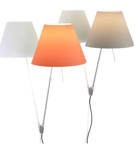 Die Luceplan Costanza Wandleuchte ist ein Designklassiker, der seit 1986 die Leuchtenwelt erobert. Paolo Rizzatto entwickelte den Entwurf für den italienischen Leuchtenhersteller Luceplan. Das zeitgenössische und dennoch klassische Design überzeugt durch seine Kontraste und Leichtigkeit. Die Luceplan Costanza Wandleuchte sorgt für eine angenehme Umgebung dank ihres natürlichen Lichtes. Der Stab der Luceplan Costanza Wandleuchte wird aus gebürstetem aluminium gefertigt. Der sehr leichte und auswechselbare Lampenschirm aus Polycarbonat wird nur mittels zweier Aufnahmepunkte am Schaft befestigt und ist in diversen Farben erhältlich. So erscheint der Schirm schwebend. Im Kontrast zu dem runden Lampenschirm steht der einfache Schaft aus aluminium. Ein weiterer Clou der Luceplan Costanza Wandleuchte ist der Sensordimmer mit Stäbchen. So können die vier Helligkeitsstufen nur durch Berührung ein... ...