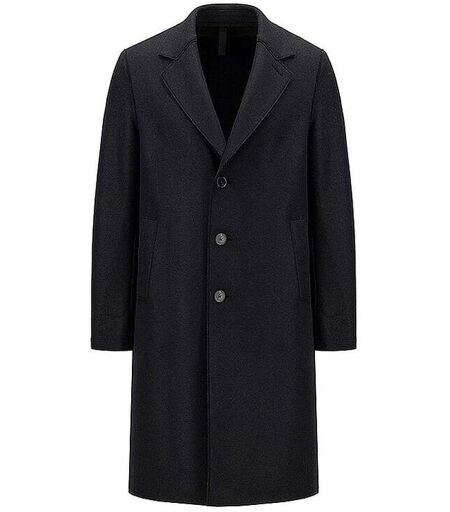 Herren Mantel aus gestickter, gefilzter Schurwolle Reverskragen Schließt mit drei Knöpfen plus einen oberen Knopf zum vollständigen Schließen Langarm Seitliche Leistentaschen Überschnittene Schultern Gerade Passform Unifarben Farbbezeichnung: Black Material: 100% Schurwolle ...