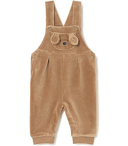 Baby Latzhose aus Cord-Baumwolle Träger mit Knopfverschluss Hunde-Applikation im Vorderteil Rippbündchen an den Beinen Unifarben Farbbezeichnung: Braun Material: 72% Baumwolle, 24% Polyester, 4% Elasthan Futter: 100% Baumwolle ...