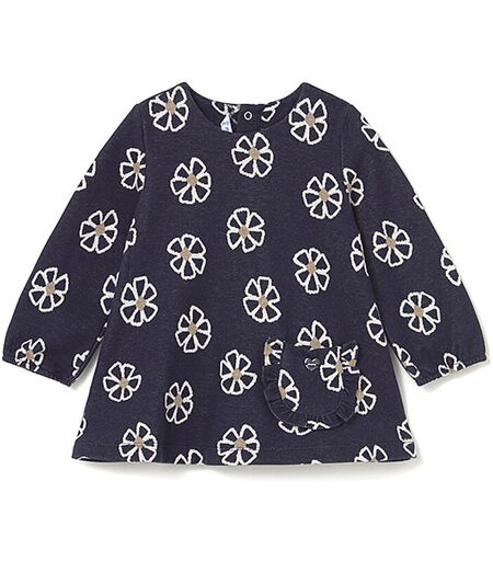 Baby Mädchen Kleid aus Baumwoll-Mischung Rundhalsausschnitt Schließt mit Druckknopfleiste in der hinteren Mitte Langarm mit elastischem Bündchen Aufgesetzte Tasche Florales Jaquardmuster Ausgestellte Passform Farbbezeichnung: Marine Material: 48% Baumwolle, 47% Polyester, 5% Elasthan ...