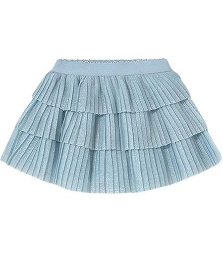 Niedlicher Baby Rock aus glitzerndem Tüll Elastischer Gummibund Volants mit Plisseefalten Ausgestellte Passform Unifarben Farbbezeichnung: H.Blau Material: 79% Polyamid, 10% Polyester, 9% Metallfaser, 2% Elastodien Futter: 100% Baumwolle ...