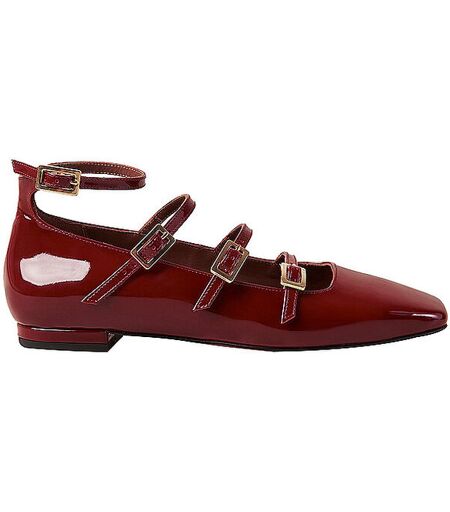 Damen Ballerina aus glänzendem Lackleder Eckige Schuhspitze Parallele Riemen mit goldfarbenen Schnallen Flacher Absatz Absatzhöhe: 1,5 cm Unifarben Farbbezeichnung: Wine Burgundy Material: Leder ...