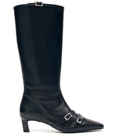 Damen Stiefel aus Leder Spitze Form Schließt mit Reißverschluss Riemen-Details Absatzhöhe: Ca. 5 cm Farbbezeichnung: Black Material: Leder Futter: Leder Sohle: Synthetik ...