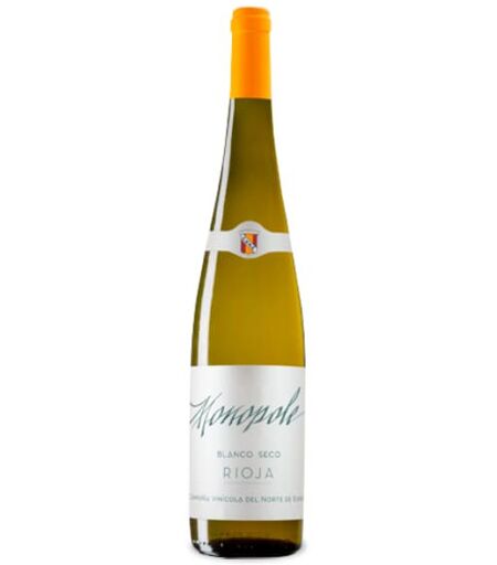 Monopole ist ein Weißwein, aus Haro in der D.O.Ca Rioja, der durch die Bodega CVNE hergestellt wird. CVNE (Compañía Vinícola del Norte de España) ist eine historische Bodega aus der Bahnhofsviertel von Haro, die 1879 gegründet wurde. Zur Zeit kontrolliert die Bodega eine Fläche von 545 ha, die in der Rioja Alta und der Rioja Alavesa liegt. Die Weinberge von CVNE haben ton- und kalkhaltige, eisenhaltige und schwammige Böden, wobei das Klima recht atlantisch geprägt ist. Monopole ist ein Weißwein, der mit der Rebsorte Viura hergestellt wird. Nachdem sanftem Pressen erhält man den Mostdotter. Die Gärung wird in Edelstahltanks bei kontrollierter Temperatur durchgeführt. Monopole ist ein frischer, blumiger und fruchtiger Wein, der sich aus der hellen mediterranen Frucht ergibt. Ein lieblicher und eleganter Wein. ...