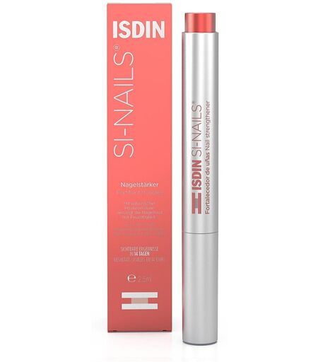 Anwendungsgebiet von ISDIN SI-Nails Nagelhärter StiftDer ISDIN SI-Nails Nagelhärter Stift ist ideal für brüchige, splitternde oder weiche Nägel und unterstützt die Regeneration sowie die Stärkung und Elastizität der Nagelstruktur.Wirkungsweise von ISDIN SI-Nails Nagelhärter StiftDer SI-NAILS® Nagelhärter stärkt die Nägel durch kationische Hyaluronsäure, Mastixöl und Silicium, fördert das Nagelwachstum, verbessert die Feuchtigkeitsversorgung und schützt vor äußeren Belastungen, die häufig zu brüchigen und spröden Nägeln führen.Wirkstoffe / Inhaltsstoffe / ZutatenInhaltsstoffe von ISDIN SI-Nails Nagelhärter Stift (INCI): Aqua (Water), Alcohol Denat., PEG-40 Hydrogenated Castor Oil, Butylene Glycol, Acrylates Copolymer, Silanediol Salicylate, Tromethamine, Caprylic/Capric Triglyceride, Hydroxypropyltrimonium Hyaluronate, Triethanolamine, Biosaccharide Gum-2, Pistacia Lentiscus (Mastic) Gum, Propylene Glycol, Phenoxyethanol, Benzyl Alcohol, Methylparaben. GegenanzeigenBei bekannter Überempfindlichkeit gegenüber einem der oben genannten Inhaltsstoffe sollte das Produkt nicht verwendet werden. DosierungAnwendungsempfehlung von ISDIN SI-Nails Nagelhärter Stift: Den ISDIN SI-Nails Nagelhärter Stift täglich auf saubere, trockene Nägel auftragen. Streichen Sie mit dem angefeuchteten Pinsel über den gesamten Nagel und die Nagelhaut. Bewegen Sie den Pinsel mit länglichen Bewegungen von innen nach außen über die gesamte Nagelfläche. Wenn möglich, bestreichen Sie mit dem Pinsel auch die Unterseite der Nägel. SI-NAILS® kann sogar auf mit Nagellack, Shellac oder UV-Lack lackierte Nägel aufgetragen werden. Information SI-NAILS® Nagelhärter – Nagelpflege für starke, gesunde Nägel in nur 14 TagenDer SI-NAILS® Nagelhärter ist ein wasserlöslicher medizinischer Nagellack zur Nagelpflege und wurde speziell entwickelt zur Nagelstärkung und das Aussehen Ihrer Nägel in nur 14 Tagen zu verbessern.² Mit einer innovat ...