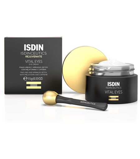 Anwendungsgebiet von ISDIN Isdinceutics Vital Eyes CremeISDIN Isdinceutics Vital Eyes Creme ist eine reparierende Augencreme gegen Falten. Die reichhaltige Pflegeformel regeneriert und glättet Krähenfüße und Mimikfalten um die Augenkontur.Eigenschaften von Vital EyesFaltenreduktion: Mildert sichtbar Krähenfüße und Mimikfalten.Regeneriert: Regeneriert und stärkt die empfindliche Haut rund um die Augen.Glättet: Sorgt für eine glattere und weichere Hauttextur.Für alle Hauttypen geeignetDie Augencreme ist für alle Hauttypen geeignet, auch für empfindliche Haut.Wirkungsweise von ISDIN Isdinceutics Vital Eyes CremeIntensive Pflege für die AugenpartieDie leichte und erfrischende Creme-Formel von Vital Eyes enthält eine einzigartige Kombination von Inhaltsstoffen, die Ihre Augenpartie intensiv pflegen.Melatonin: Stimuliert die antioxidativen Abwehrkräfte der Haut und hilft, die Haut vor den täglichen Belastungen durch oxidativen Stress zu schützen.LiftFirm: Sorgt für einen sofortigen Lifting-Effekt und glättet das Erscheinungsbild von feinen Linien und Falten.Koffein: Entgiftet die Augenpartie, schützt die Zellen vor UV-Strahlung und verlangsamt den Alterungsprozess durch UV-Einwirkung. Reis-Extrakt: Erhöht den Hautschutz und trägt dazu bei, vorzeitiger Hautalterung vorzubeugen.Wirkstoffe / Inhaltsstoffe / ZutatenISDIN Isdinceutics Vital Eyes Creme enthält: Aqua (Water), Glycerin, Propanediol, Dimethicone, Dicaprylyl Carbonate, Caffeine, Butyrospermum Parkii (Shea) Butter, Maltodextrin, Caprylic/Capric Triglyceride, Behenyl Alcohol, Olus Oil (Vegetable Oil), Dipentaerythrityl Hexacaprylate/Hexacaprate, Tridecyl Trimellitate, Cetearyl Alcohol, Dipotassium Glycyrrhizate, Sodium Polyacrylate, Candelilla Cera (Euphorbia Cerifera Wax), Unda-ria Pinnatifida Extract, Cetyl Alcohol, Glyceryl Stearate, Phenylpropanol, Xanthan Gum, Ammonium Acryloyldimethyltaurate/VP Copolymer, Poly C10-30 Alkyl Acrylate, Tocopheryl Acetate, PEG-75 Stearate, Cap ...