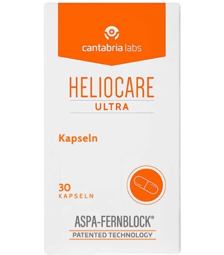 Anwendungsgebiet von Heliocare Ultra D KapselnHeliocare Ultra D Kapseln der innovativen Sonnenschutz von innen dank der patentierten Fernblock®-Technologie. Diese unterstützt den Schutz des hauteigenen Immunsystems, wirkt der Entstehung von Hyperpigmentierungen entgegen und kann bestehende Pigmentflecken reduzieren. Zudem trägt sie dazu bei, lichtbedingte Hautalterung (Photoaging) zu verlangsamen und freie Radikale unschädlich zu machen. Dermatologisch geprüft und für jeden Hauttyp geeignet.Mit ASPA-FERNBLOCK: patentierte Technologie. Basiert auf dem Extrakt des Farns Polypodium leucotomos und weiteren wertvollen Antioxidantien.Schützt das Gewebe, das Immunsystem, die Vitamin D Rezeptoren und die DNA der Haut.Wirkstoffe / Inhaltsstoffe / ZutatenZutaten von Heliocare Ultra D Kapseln :Polypodium Leucotomos Extract Aspalathus Linearis Lutein Vitamin C (L-Ascorbic Acid) Lycopene Vitamin D (Cholecalciferol) Vitamin E (DL-Alpha-Tocopheryl Acetate) Capsule Shell: Hydroxypropylmethylcellulose Colorants: Red Iron Oxide Chlorophyllin (E140ii) Nährwertdeklaration1 Kapsel100 gNRV¹Energie10,22 kJ2,40 kcal1577 kJ371 kcalFett0,005 g0,8 gDavon gesättigte Fettsäuren0,002 g0,3 gKohlenhydrate0,583 g89,9 gDavon Zucker0,045 g7,0 gEiweiß0,007 g1,1 gSalz²0,006 g0,875 gPolipodium leucotomos Extrakt240 mg37,04 gAspalathus linearis Extrakt240 mg37,04 gVitamin C20 mg (20% NRV¹)3090 mg100 %Vitamin E3 mg (23% NRV¹)463 mg25 %Vitamin D5 µg (25% NRV¹)772 µg25 %Lutein2 mg309 mgLycopin1 mg154 mg¹Nährstoffbezugswerte (nutrient reference values NRV) in Prozent gemäß EU-Lebensmittelinformationsverordnung²Der Salzgehalt ist ausschließlich auf die Anwesenheit natürlich vorkommenden Natriums zurückzuführen.GegenanzeigenBei bekannter Überempfindlichkeit gegenüber einem der oben genannten Inhaltsstoffe sollte dieses Produkt nicht angewendet werden.DosierungVerzehrempfehlung von Heliocare Ultra D Kapseln:Für Erwachsene mit einem Körpergewicht bis zu 70 kg wird empfoh ...