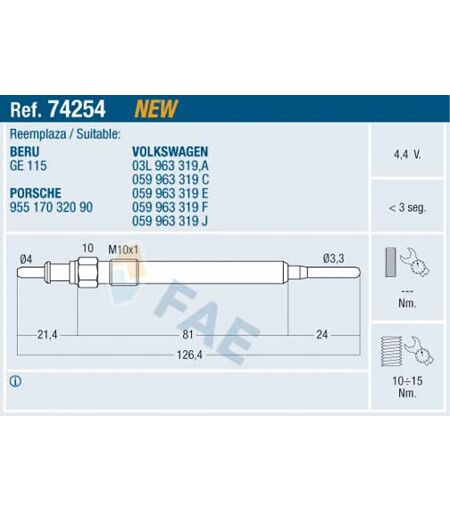 Fae Glühkerze 4,4v Für Vw Porsche 059963319j 95517032090 059963319c 74254